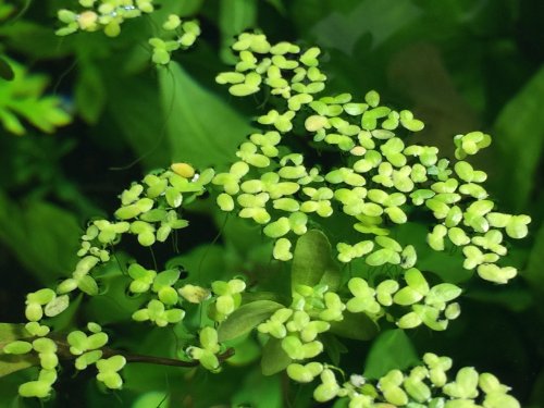Duckweed, also known as water lens, is a fast-growing floating plant. The leaves (or fronds) are very small and vibrant light green in color. They grow in dense colonies and provide hiding places for small invertebrates and fish.