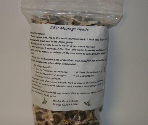 Moringa Benefits: -3 times the Potassium in bananas. -7 times the Vitamin-C as in oranges. -25 times the Iron in spinach. -4 times the Calcium in milk. -4 times the Vitamin A in carrots. Planting from seeds: -Plant in a sunny place. -For seeds, place approximately 1 inch into the soil and tamp down gently -Use loose soil or mix soil with sand so that the area where the roots are growing have plenty of good drainage for the water to flow to and then away from the roots. -Water the Moringa Tree regularly for the first two months. After that time period, rain water is usually sufficient. -A lot of fertilizer isnt necessary for this type of tree. If you are not pleased with something regarding your order, please contact us before leaving negative feedback. We strive to have excellent customer service and in most cases go above and beyond to ensure you are pleased with your purchase and with our level of commitment to you! Thanks for shopping, Linda *Paisley Farm & Crafts is a certified nursery. **Please check with your local Post Office or Agriculture Department before purchasing plants. Certain states and countries have their own import/export regulations and it is the buyers' responsibility to be aware of their home state restrictions.