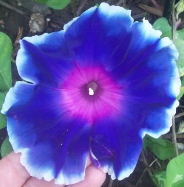 - Some variegated leaves (some oak leaves). 5-6 inch Flowers in Blue, White, Pink, Purple, Light Pink, Lavender, Violet, and almost white all with white rims and / or stripes. WOW! These Japanese species of Morning Glories are definitely different that the regular Morning Glories you are probably used to seeing. They come in wonderful different shades and color combinations. They are more sprawling than climbing, so they are perfect for hanging baskets, pots, or adorning bushes. They attract bees, butterflies, and everybodys favorite - the HUMMINGBIRD!