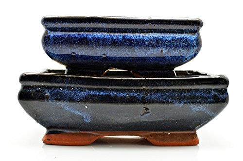 These are two beautiful blue glazed Japanese bonsai pots It's classic low profile and rectangular shape makes it a great pot for any Bonsai tree style. Handmade by the famous Houtoku company in the Negoyo region of Japan, this is a superior quality bonsai pot set at a great price.