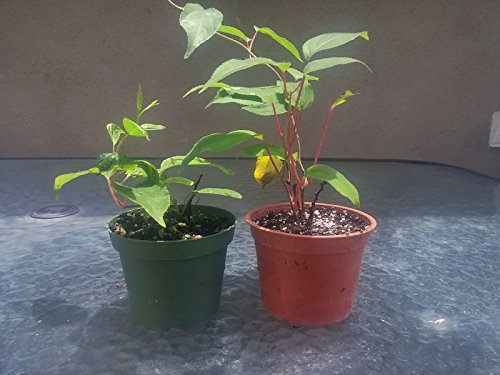 The Hardy Arctic Kiwi is THE FRUIT OF THE FUTURE. Fruits are now being marketed and sold in produce stores. It has been accepted in the marketplace and the demand will be growing in the very near future for the small delicious fruits. The Hardy Kiwi, are native to the mountains and hills of southwestern China where they grow wild in trees and on bushes. The Hardy Kiwi was introduced to the United Kingdom, Europe, United States, and New Zealand between 1900 to 1910 from China. Commercial plantings were made in New Zealand about 1930 and have become widespread over the last 20-30 years. These plants have been tested in New Hampshire and upper New York State where they survived 25 degrees F below zero temperatures! Kiwi plants are attractive growers that require a sunny location, preferably with wind protection. They can be grown in different types of soils; however, the soil must be well drained. The vines take very little maintenance-just pruning and support to hold about 100 lbs. of fruit for a mature plant. Plant 10 to 20 ft. apart. They are hardy in zones 4-9. Kiwi plants are very pretty when used to cover a wall or fence or used in landscape design. The fruit is very high in Vitamin C and its use in recipes is endless. The hardy Kiwis ripen in mid to late September. Growing instructions included with each order. Two Hardy Kiwi Plants are necessary to get fruit, a male and female. Female Plant: Actinidia arguta 'Anna' (Ananasnaya). An outstandingly reliable bearer of relatively large fruit. The fruit is very sweet. A nurseryman from Tennessee, reports that in 1996 his large vine of 'Anna' bore over 200 lbs. of fruit. Imported into the U.S. from Belgium. Male Plant: Actinidia arguta 'Meader'. Use as a pollinator for female selections. A beautiful vine on it's own! The 2 plants you will receive are growing in 3" pots. One male plant can pollinate several female plants.