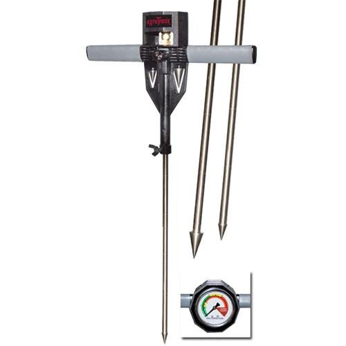 Soil Compaction Meter measures the extent and depth of subsurface compaction. Durable 24"L Meter has a gauge with color-coded dial to indicate whether growing conditions are Good, Fair or Poor. Adjustable shock collar prevents gauge damage during transport and storage. Compaction measurements help optimize water retention, foster healthy root development and increase the effectiveness of fertilizers, pesticides and herbicides. Includes two self-storing tips; a 3/4" tip for soft soil and a 1/2" tip for firm soil. Reads from 0 to 200 psi for good conditions; 200 to 300 psi for fair conditions; and 300+ psi for poor conditions.