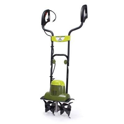 Sun Joe Tiller Joe 6.5-Amp Electric Garden Tiller/Cultivator holds the power found in a gas tiller with the convenience of electric power. Weighing in at 17 pounds the Tiller Joe is easy to use in any situation; such as starting a new garden or recovering an old lawn. Its four steel angled tines enable the Tiller Joe to loosen the ground and make any planting or dirt removal easier than with hand tools; relieving strain on the operator by using power and reducing weight and motion by the operator. No tune ups or oil are necessary ever. 14" Cultivating Width Instant Start 4 Rotor Blades Folding handle enables unit to store easily and take up minimal space.