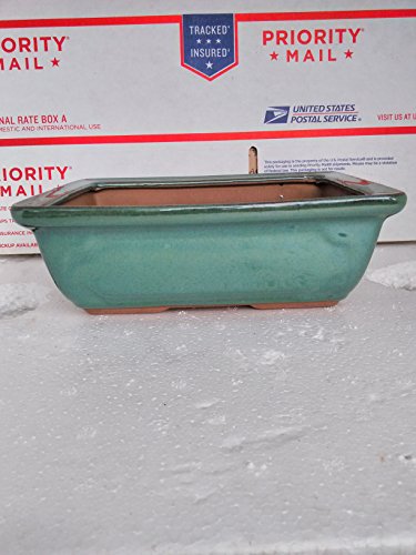 Ceramic Bonsai Pots - Japanese jmbamboo Brand -green Ceramic pot is 8x6'' inches 2.5 tall free drain screens