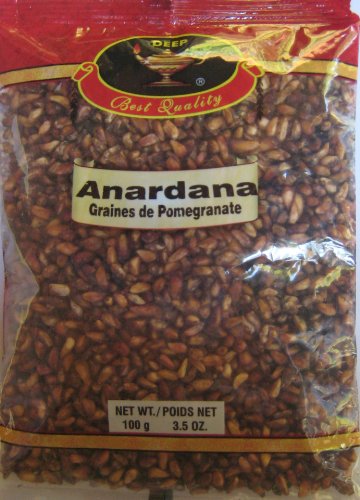 This souring agent is small, sun-dried seeds of the wild Indian pomegranate plant. They are available here in seed or powder form. Their tangy, sweet, slightly sour taste is added to curries, chutneys, dals and even desserts. These seeds are also used in tangy lamb and chicken dishes. These seeds ease flatulence and heartburn.