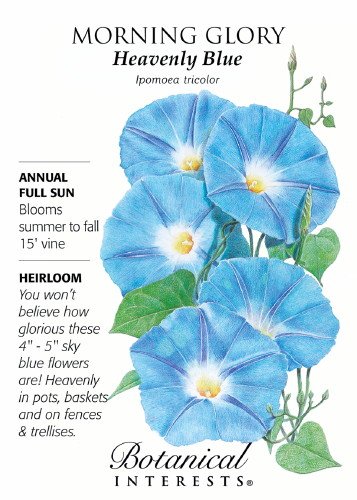 Annual. Blooms summer to fall. 15' vine. Full sun. 4"-5" vibrant blue blooms open in the cool of morning. Growth is fantastically quick! You won't believe how quickly this morning glory will cover a fence or trellis. Can also be grown in pots, baskets, or as a ground cover.