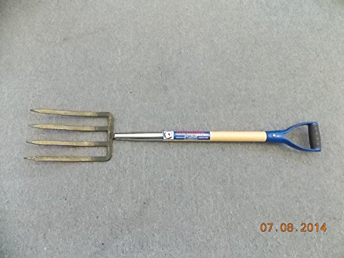 This professional quality spading fork is forged from quality carbon steel. 4 fork tines are forged, Not welded. Properly heat treated and tempered for maximum strength. Fork tine has 11/16" width and 1-1/4" sharp pointing end for hard soil digging. Fork tine has angular back(Diamond shape) which is specially designed to re-enforce tine strength. The size of fork tine is 11/16" wide by 11-1/2" long. Head size is 7-1/2" wide by 11-1/2" long. Assembled with American made Ash wood handle and poly D Grip. Assembled with a 7" long chrome plated steel ferrule to re-enforce the handle. Overall length is approx. 41-1/2". This spading fork is a heavy duty quality, will serve efficiently for digging, raking and cultivation and root lifting. It is a very useful tool for your yard work, landscaping and construction work.