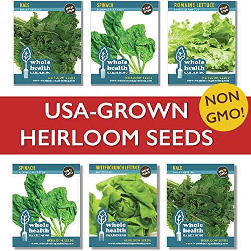 - ✔ EASY TO GROW: Heirloom Varieties of Non GMO Leafy Green Seeds: Dwarf Siberian Kale, Bloomsdale Savoy Spinach, Buttercrunch Lettuce, Romaine Lettuce, Georgia Collard Greens, and Green Lucullus Swiss Chard. All are easy to care for!