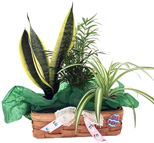 Hirts Gardens Parlor Palm, Spider Plant and Snake Plant with 10 by 4 by 3-Inch Wicker Basket
