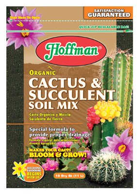 Organic cactus and succulent soil mix, professionally formulated for use with both jungle and desert cacti. Provides the drainage cacti need to flourish; ready to use; pH balanced. Complete package directions provide useful growing information. This product weighs 10 quarts.