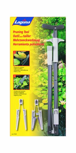 The Laguna Pruning Tool is a versatile, practical and handy item for doing pond maintenance work. The tool has a long shaft and comes with two interchangeable head attachments to give you the reach and flexibility to do cleanups in and around water gardens. Simply grasp the hand grip and squeeze to control the scissor or pincer head at the other end. The scissor head cuts and removes leaves from pond plants in one easy step. The pincer head lets you grasp and remove debris with ease and precision. The Laguna Pruning Tool and head attachments are easy to assemble, and come with simple instructions on the package.