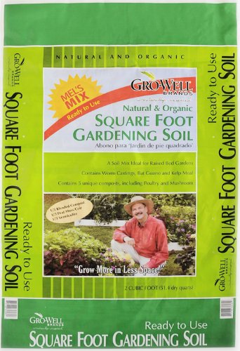 Mel's Mix Square Foot Garden Potting Soil is a Natural and Organic ready to use Potting Soil. Ideal for use with Square Foot Gardens, Raised Garden Beds, Flower Beds and Potted Plants. Each bag contains two cubic feet of soil.