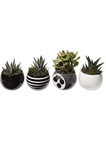 - Grower's choice of assorted succulent varies and 3 pot colors recieved are RANDOM, selected from Gray, White, Black or White/Black Stripe. **BUYER WILL ONLY RECIEVE 3**