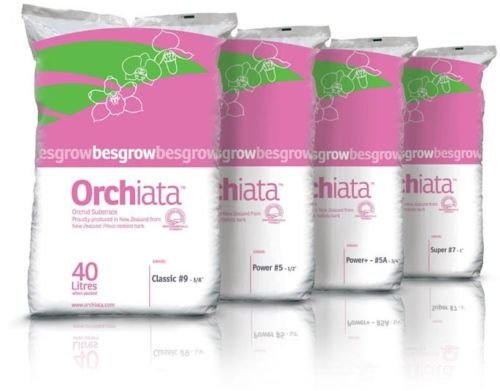 Besgrow New Zealand Orchiata Bark Power 3/8 - 1/2 Repackaged for resale 5 Litres= 1 Gallon Bags a unique, stable substrate designed to be used straight from the bag for potting and re-potting orchids. It is produced from the finest quality, 100% pure New Zealand Pinus radiata bark, sourced from renewable, man-made forests. A unique natural processing method destroys harmful pathogens and toxins, and leaves behind beneficial micro-organisms to create a high-quality, long lasting, consistent growing substrate. This processing method also allows Orchiata to hold water and nutrients on the outside layer of each chip and it imparts a slightly rough surface, creating a perfect anchor for orchid roots. By using Orchiata, growers have reported that frequent re-potting is not necessary, as potted plants have been known to remain in excellent condition in excess of 10 years.