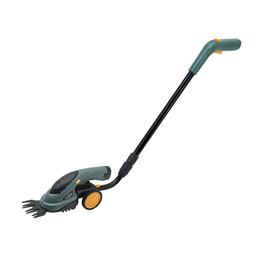 - Detachable handle and wheels allows for use as a handheld trimmer