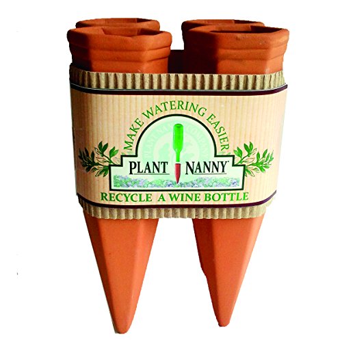 Each ceramic Plant Nanny Stake is specially designed to release just the right amount of moisture into the soil. You create the water reservoir by filling an empty wine, water or soda bottle with water and attaching the included, drip-free, threaded adaptor. As the soil begins to dry, the device slowly releases more water (through gravity/diffusion).