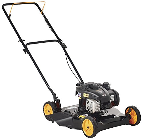 This Poulan PRO lawn mower is the perfect choice for mowing small to medium-sized lawns. Lightweight and easy to use, this 20” mower features a side discharge cutting deck, is well suited for yards with flat terrain. The compact design means it maneuvers easily around trees, rocks and flowerbeds to make it a perfect trim mower. The easy starting Briggs & Stratton 450e Series 125cc engine provides 4.5 ft. lbs. gross torque to supply all the power you need along with a fast, reliable starting system to get you mowing quickly. The quick adjust, 5 position lever lets you can customize your grass height from .1" to 3.5". Unlike similar competitor units, this lightweight mower is fully assembled and ready to use right out of the box.