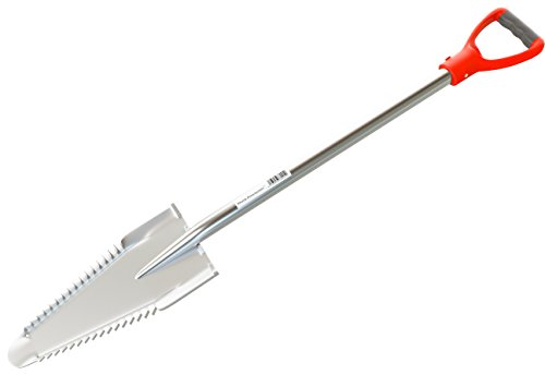The Root Assassin is excellent for clearing-out an overgrown area of garden, forest or brush. The engineered "bone structure" adds amazing strength and the curved sharpened tip cuts roots easily. The unique shape of the serrated teeth located on both sides of the shovel is built to withstand the toughest jobs and can be sharpened with a wheel or grinder. The secret of the shovel is the fact that the teeth cut roots when pushing in and when pulling out. The shovel is made of solid structural carbon steel and is overlaid with a sleek silver color powder coat. The ergonomically designed steel shaft is topped by with durable solid rubber coated bright red handle for comfort and ease of locating amid the grounds. Weighing 4 lbs, it's light enough to be dragged along for a long day and yet strong and dense enough to provide the leverage needed to get the job done. It is an excellent addition to your garden tools. It is the number one gardening tool. It beats all metal shovels. It is the only one of its kind, with the shovel/saw combo. It is the king among gardening shovels. (Please do NOT use as a lever; max weight is 250 lbs.) Winner of the Golden Shovel Award by Garden Products Review!