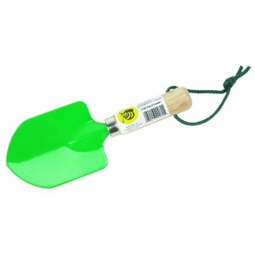 High quality childrens garden hand trowel is a scaled down replica of full sized adult garden tools. Smooth finished hardwood handle with tether. Color: Green.