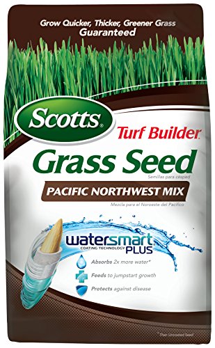 Scotts Turf Builder Pacific Northwest Mix. Locally developed and formulated for the Pacific Northwest Region. Ideal for areas of sun and shade. Grows in thick to help keep out moss and poa annua. Coverage: 2,380 sq. ft.