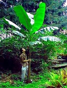 Darjeeling Banana A rare and little known large banana species, new to cultivation, that sports a massive pseudo-trunk to 4,5m (14ft) tall and 45cm (18in.) in diameter, tinged with red, and purple new leaves and leaf-midribs. Plants exhibits beautifully dark red mottled leaves. The Darjeeling Banana is very hardy to cold (i.e. in the sense of Musa basjoo) coming, as it does, from montane forests up to 2000m (6000ft) in the Himalayas of NE-India. First trials outdoors in the US, Britain, Germany and Switzerland have shown an excellent resistance to cold and frost. Like all bananas, it is extremely fast growing, given rich soil and an abundance of water. The fruits have a sweetish pulp.