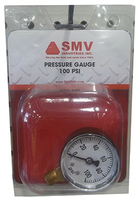 SMV Pressure Gauge mounts into gauge tee in sprayer manifold for boom type sprayer or boom ready spot sprayer. White face with easy to read black font. 0-100 PSI Pressure gauge Mount into gauge tee in sprayer manifold for boom type sprayer or boom ready spot sprayer White face with easy to read black font.