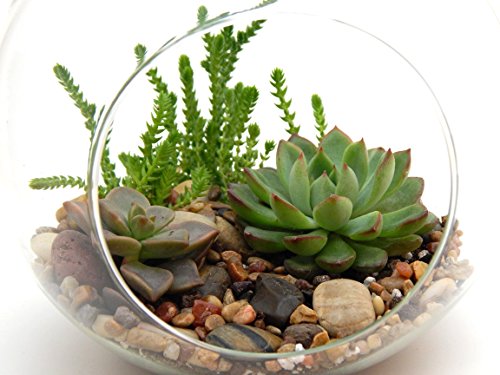 Succulent Terrarium Kit 3 Succulents, 6" Round Glass Globe, River Rocks and Soil
