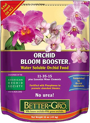 Better gro orchid bloom booster is a urea-free, professionally formulated fertilizer, containing high content phosphorousa powerful blooming agent. This secret formula was developed by our own master growers and is used in our greenhouses to accelerate flowering, enhance bloom color and maximize bloom size. It provides the precise mix of ingredients and nutrients your orchids need to produce beautiful, vibrant and long lasting blooms. Use this fertilizer at every 4th watering. Use one teaspoon per gallon of water, thoroughly soaking both the orchid�s root system and foliage. For normal fertilization of your orchids, use this fertilizer as directed. This product weight 16 ounces.
