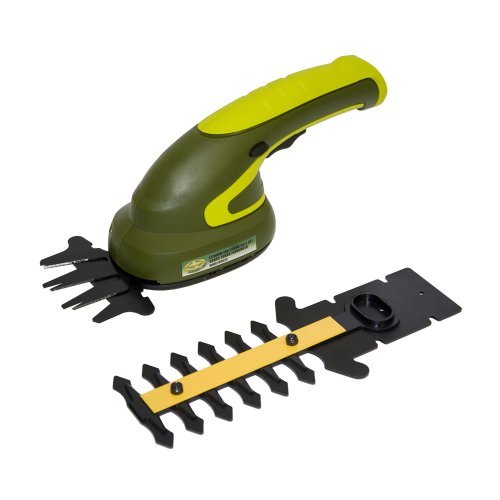 This Sun Joe Cordless 2 Tools in 1 Grass Shear- Shrubber comes with 3.31 Inch Grass Shear Blade, 5 Inch Grass Shrubber Blade, Lithium Ion Battery, Battery Charging Indicator Light, Ergonomic Handle, Instant Start and 2 Year Warranty.