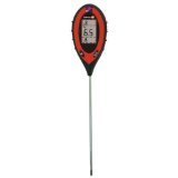 Test pH levels, environment sunlight intensity, moisture levels and temperature all with one tool with the Sunleaves Digital 4-Way Soil Meter. The meter has a large, easy-to-read LCD screen and is attached to an 8" long probe to reach root-deep into the soil being tested. Other features include an automatic power off function and a low battery indication. Required 9V battery is included.