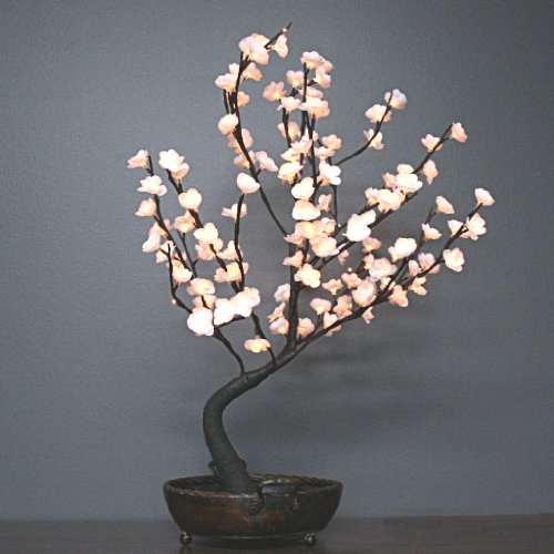 Light Garden white bonsia tree. 128 lites. Plugs into AC power, weighted base included. Enjoy the beauty of a Japanese garden year round with our beautiful flowering bonsai tree. 30 inches in height 16 ft. electrical cord Multiple branches with 128 lights UL approved Transformer included Bowl measures 12.5 Inch across handle to handle For wedding planning, events, home decorating, endless uses.