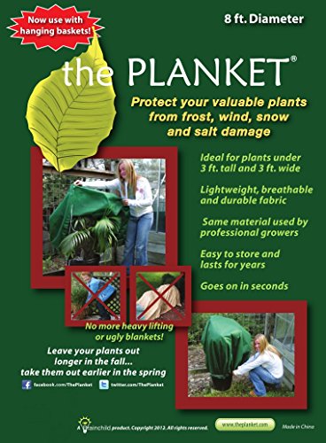 The Planket is a plant blanket that helps protect your valuable plants from frost, sleet, snow, and cold winds. This round shaped Planket measures 8 feet in diameter & is ideal for plants under 3 feet tall and is made of spun-bonded, nonwoven material. There is a built-in cinch cord around edge to help secure the Planket to plants & pots. The lightweight, but durable material allows plants to breathe. Easy on-easy off application makes it simple to use when severe weather occurs. Available sizes include the 6 ft. Round, 8ft. Round, 10ft. Round & 10ft.x20ft. Rectangular.