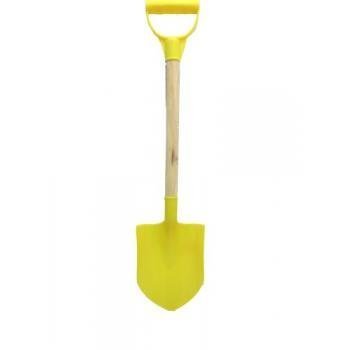 Sand Shovel. is 25 1/2" long. Features a surdy plastic spadeand handle on a wooden shaft.