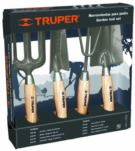 Truper 30642, JJ-4, Garden Tool Kit With Hoe, Cultivator, Transplanted, Trowel, 6-Inch. Handy floral garden kit with rake, shovel, hoe. 6-inch Harwood ash handle is tough and strong with limited elasticity. Handy leather tie/loop on handle, to store or hang in shed or garage. Protective steel gray painted finish. Stock up on quality Truper Tools for other projects today. Truper has been in the hand tool manufacturing business for over 40-year and is by far the largest Mexican company in its field. Truper relies on the most advanced modern and efficient technology to guarantee the optimum quality and value of its products and demanding service needs of the company's global customers.