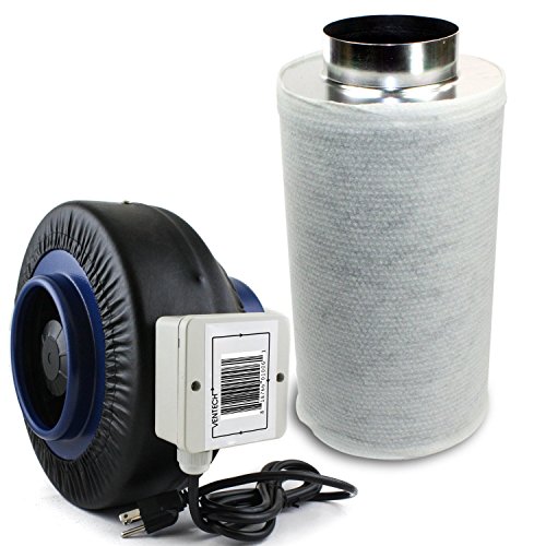 VenTech VT IF6+CF6 IF6CF620 Inline Duct Fan with Virgin Charcoal Carbon Filter Combo, 440 CFM, 6"